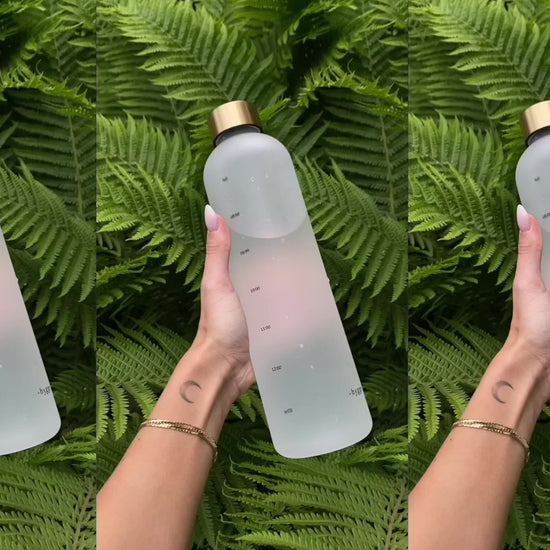 Tímavísinn á hlið flöskunnar hvetur þig til að drekka reglulega eða bæta upp ef þú gleymir þér. Hver klukkutími er eitt vatnsglas.